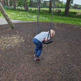 We then headed down to King's Park for lunch and to play. A was so excited to show me how she can now stand and swing at the same time. O enjoyed the roundabout and tunnel, he also braved the swings a little. A also braved the rock climbing wall and kept trying her hardest to climb it, she got a little way up with help but it's a bit difficult. We then bumped into Loki (the dog) on his walk and went to say hi for a little while.